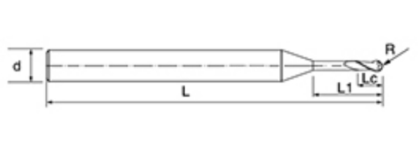 | Nie | Priemer D | R Uhol R | Dĺžka flauty Lc | Efektívna dĺžka L1 | Celková dĺžka L | Shank Dia d | Počet čepelí F |