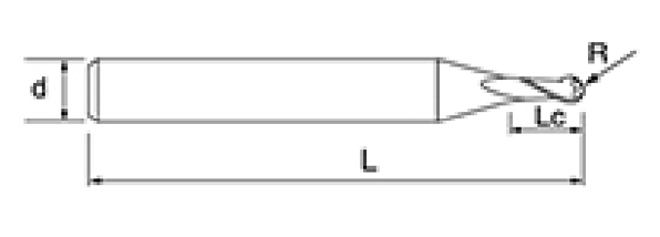 | Nie | Priemer D | R Uhol R | Dĺžka flauty Lc | Celková dĺžka L | Shank Dia d | Počet čepelí F |