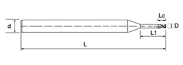 | Nie | Priemer D | Dĺžka flauty Lc | Efektívna dĺžka L1 | Celková dĺžka L | Shank Dia d | Počet čepelí F |