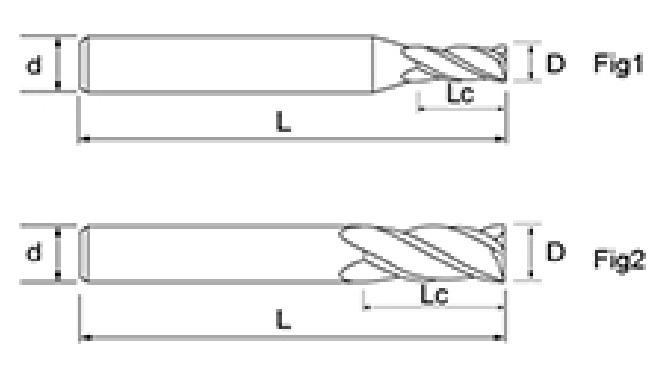 | Nie | Priemer D | Dĺžka flauty Lc | Celková dĺžka L | Shank Dia d | Počet čepelí F |