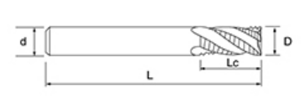 | Nie | Priemer D | Dĺžka flauty Lc | Celková dĺžka L | Shank Dia d | Počet čepelí F |
