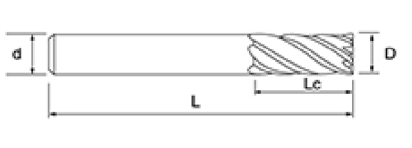 | Nie | Priemer D | Dĺžka flauty Lc | Celková dĺžka L | Shank Dia d | Počet čepelí F |