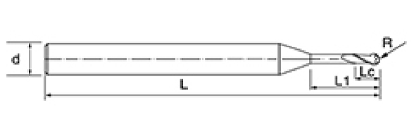 | Nie | Priemer D | R Uhol R | Dĺžka flauty Lc | Efektívna dĺžka L1 | Celková dĺžka L | Shank Dia d | Počet čepelí F |