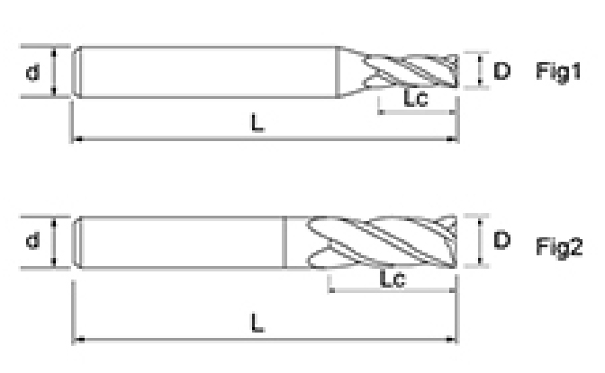 | Nie | Priemer D | Dĺžka flauty Lc | Celková dĺžka L | Shank Dia d | Počet čepelí F |