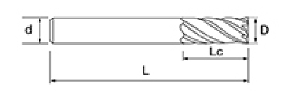 | Nie | Priemer D | Dĺžka flauty Lc | Efektívna dĺžka L1 | Celková dĺžka L | Shank Dia d | Počet čepelí F |