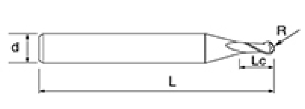| Nie | Priemer D | R Uhol R | Dĺžka flauty Lc | Celková dĺžka L | Shank Dia d | Počet čepelí F |
