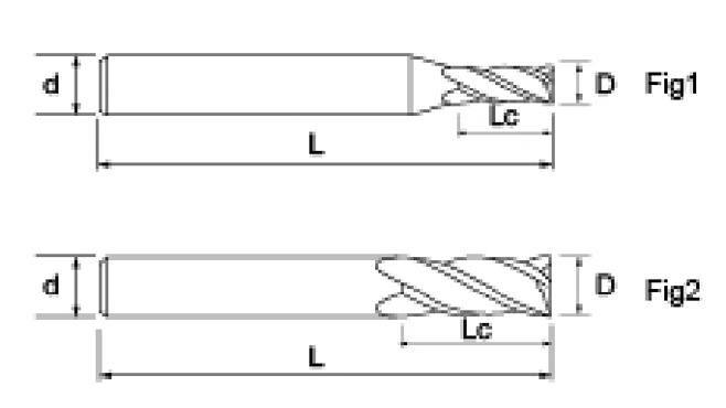 | Nie | Priemer D | Dĺžka flauty Lc | Celková dĺžka L | Shank Dia d | Počet čepelí F |