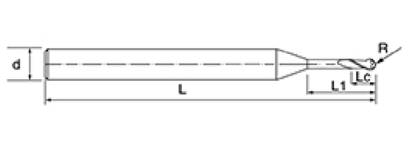 | Nie | Priemer D | R Uhol R | Dĺžka flauty Lc | Efektívna dĺžka L1 | Celková dĺžka L | Shank Dia d | Počet čepelí F |