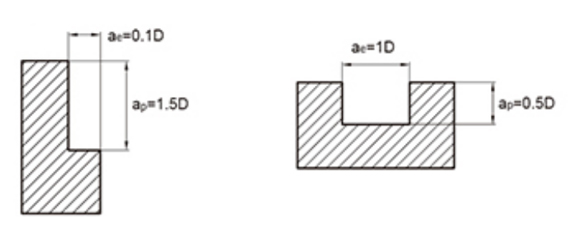 1. Vyššie uvedená tabuľka je založená na referenčných hodnotách pre bočné frézovanie. Rezné podmienky pre frézovanie drážok sú založené na 70 % rýchlosti posuvu v tabuľke vyššie.