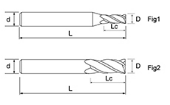 | Nie | Priemer D | Dĺžka flauty Lc | Celková dĺžka L | Shank Dia d | Počet čepelí F |