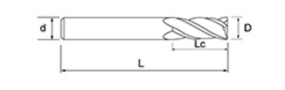 | Nie | Priemer D | Dĺžka flauty Lc | Celková dĺžka L | Shank Dia d | Počet čepelí F |
