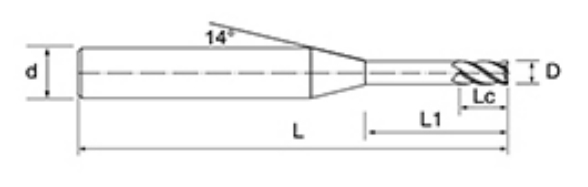 | Nie | Priemer D | Dĺžka flauty Lc | Efektívna dĺžka L1 | Celková dĺžka L | Shank Dia d | Počet čepelí F |
