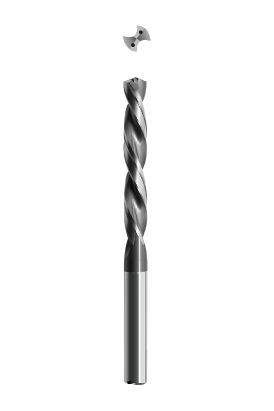 • Skrutkovitý vrták s priamou stopkou s vnútorným/vonkajším chladením.